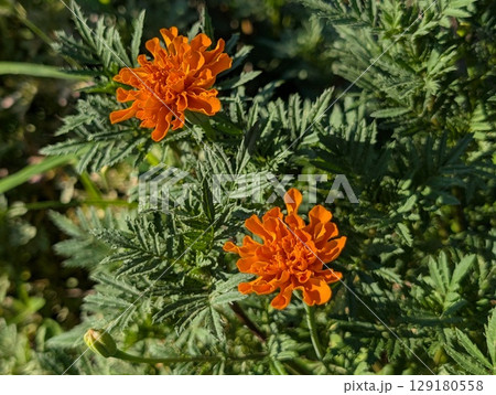 ガーデンに咲く美しく可憐なオレンジ色ののシャクヤクの花