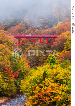 紅葉に染まる見倉橋【新潟県津南町・秋山郷】