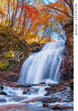 竜門の滝と秋の紅葉 埼玉県秩父市の自然風景