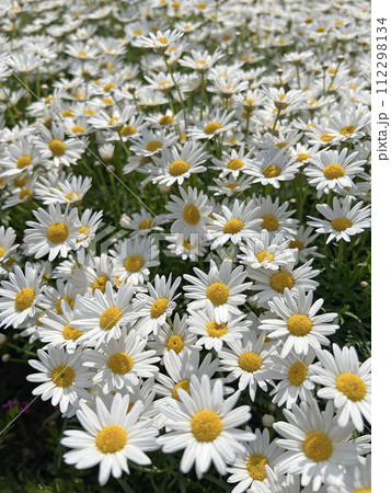 拍攝公園裡一片盛開的白色菊花