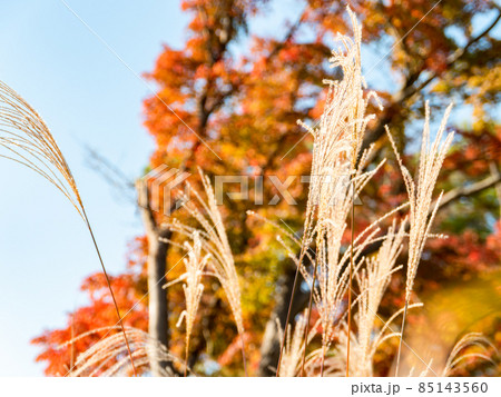秋の風物詩 青空の下、美しく輝くススキの花穂