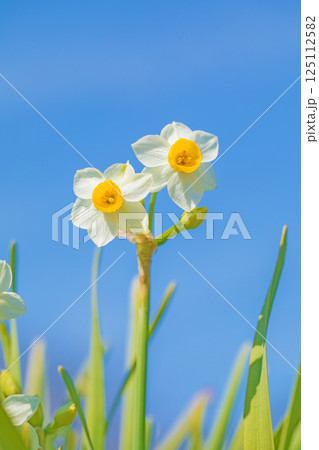 家の周りの草花 四季の色々 春の公園の花壇に黄色く美しい清楚なスイセン花が咲きました