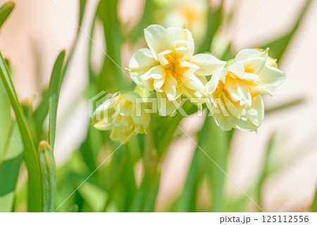 家の周りの草花 四季の色々 春の公園の花壇に黄色く美しい清楚なスイセン花が咲きました