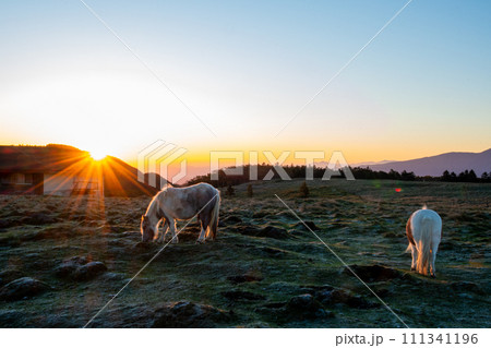 美ヶ原高原の日の出と馬