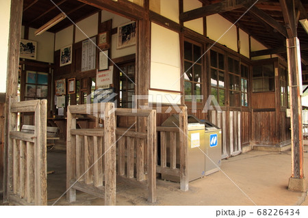 JR因美線にある美作滝尾駅の木造駅舎で無人駅だが木製の改札口が設置されている