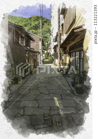 水彩画風 美保関 青石畳通り 無料休憩所 島根県松江市