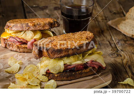 Two tasty double-decker grilled burger with beef, tomato and cheese