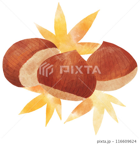 紅葉と栗の秋イメージイラスト 水彩タッチ