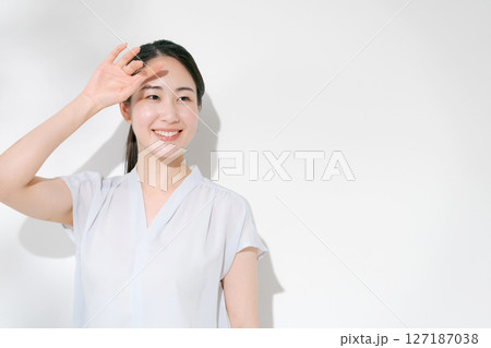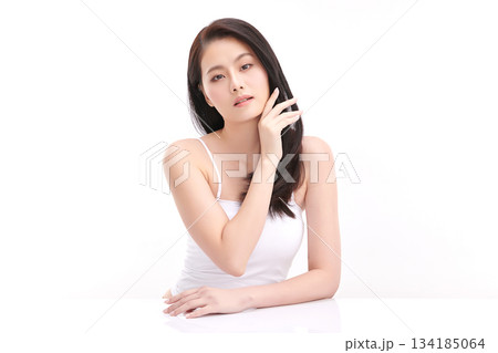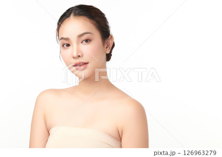 Beautiful young asian woman with clean fresh skin on white background, Face care, Facial treatment, Cosmetology, beauty and spa, Asian women portrait.