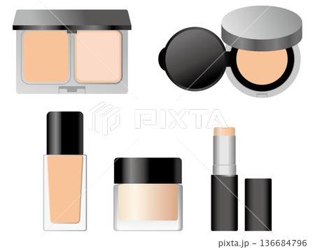 ファンデーションの種類セット(パウダー・クッション・リキッド・クリーム・スティック)カラフルタイプ