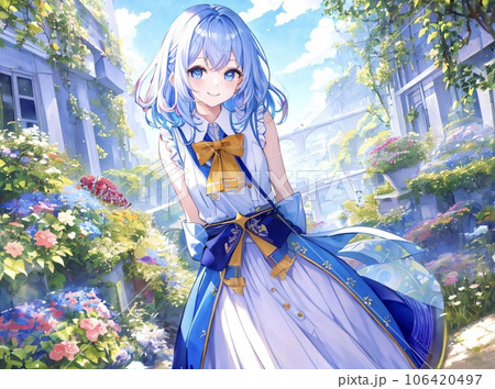 女学生、アニメ風、カラーイラスト