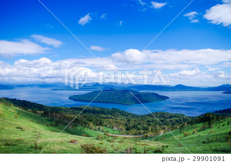 美幌峠からの屈斜路湖。弟子屈、北海道、日本。6月下旬。