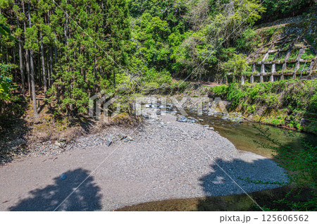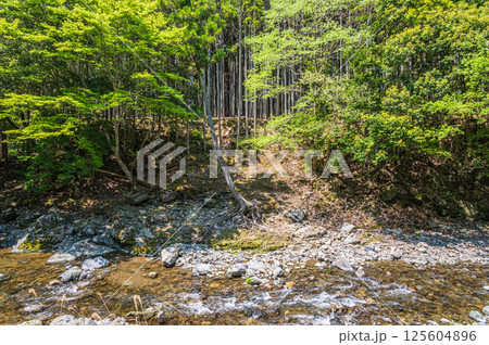 新緑の清滝川沿いの山林風景 京都市右京区