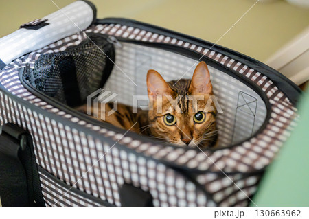 部屋でくつろぐ青い目の可愛い子猫。カメラ目線の子猫