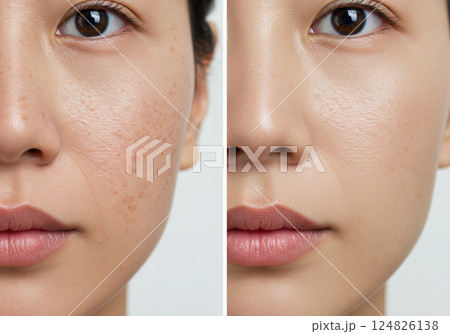 シミ・毛穴の変化をとらえた美容効果の比較ビフォーアフター(AI生成画像)