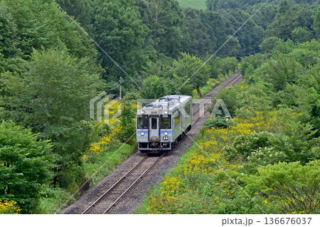 JR北海道富良野線美馬牛駅から西中駅間の風景(2023年夏早朝)