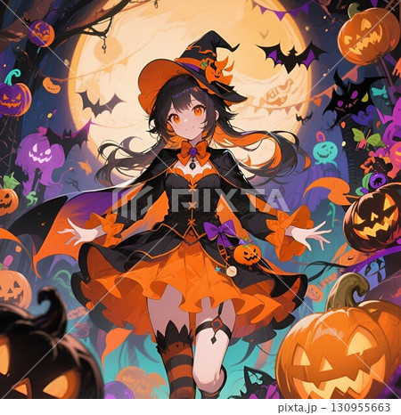 ハロウィンのかぼちゃを食べているハロウィーンのカボチャと黒猫
