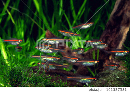レッドラインスボラ 群れ コイの仲間 アクアリウム