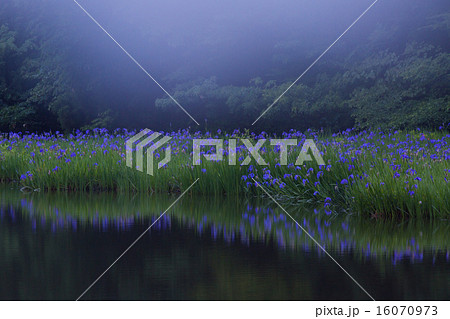 滋賀県高島市今津町平池に群生するカキツバタを早朝撮影