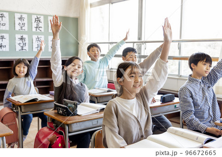 小学校、授業イメージ、挙手