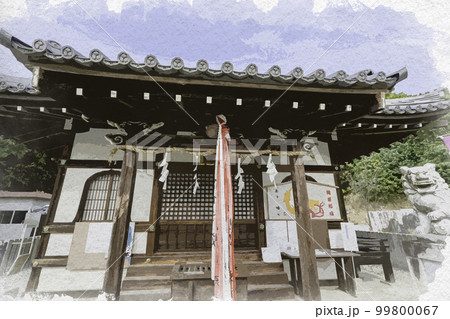 水彩画風 壺井八幡宮 壺井権現社 大阪府羽曳野市