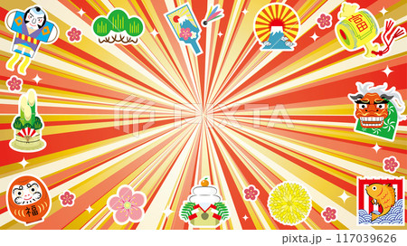 グラデーションを正月のミックスフラッシュ(新年のオブジェクトと音符)