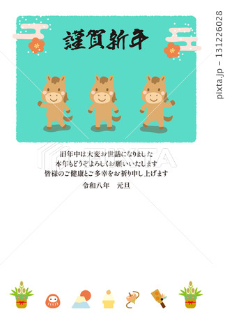 謹賀新年 親子の馬の年賀状テンプレート03_横