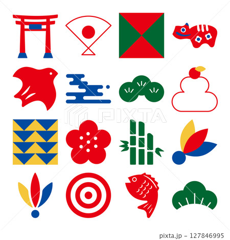 年賀状にもつかえる和風のイラスト。和風のアイコンセット。和モダンなイラスト。