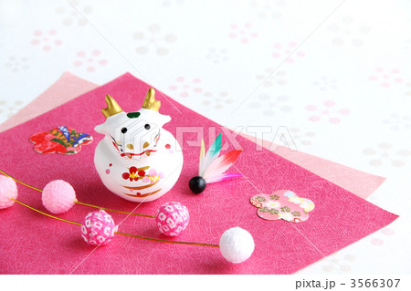 お正月イメージ 干支 猪 扇子 舞玉 獅子舞 羽根