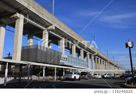 鹿児島本線 羽犬塚駅の駅舎と九州新幹線の高架