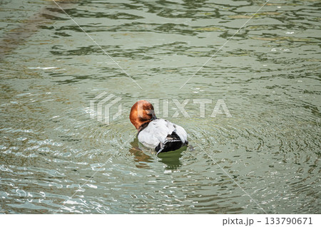 水に浮かびながら羽づくろいするキンクロハジロ 京都市