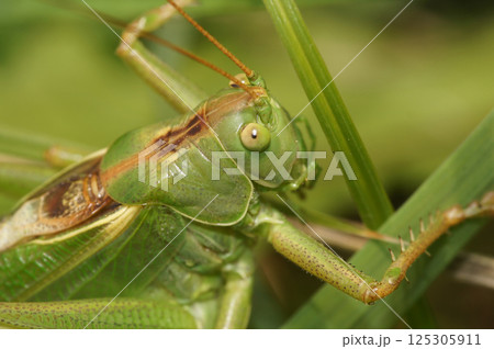 Closeup on the European great green bush-cricket, Tettigonia viridissima