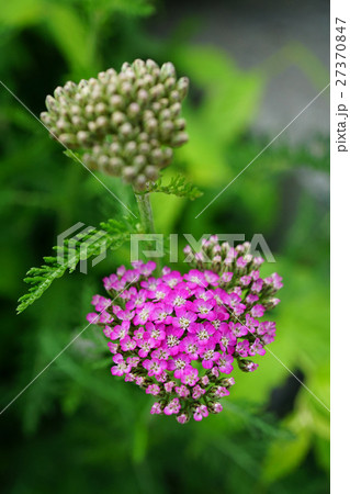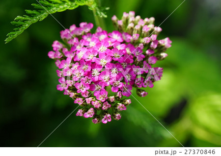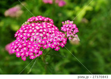 初夏の庭に咲くピンク色のノコギリソウの花