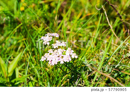 初夏の日本の公園に咲く白いノコギリソウの花