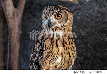精悍な目付きで何かを睨むベンガルワシミミズク[ フクロウ】