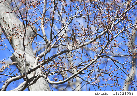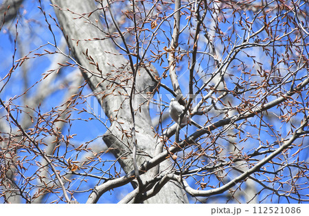 東京都三鷹市の野鳥 仙川に隣接する公園の桜にとまるシジュウカラ