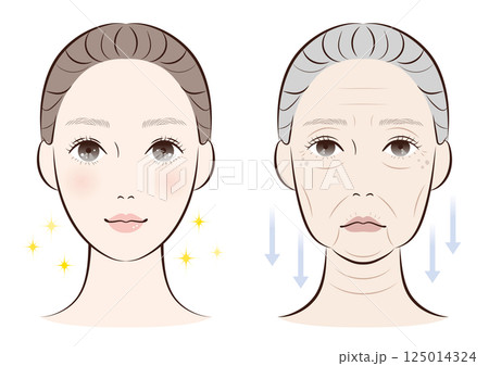 老化が進んだ顔と若々しい顔の比較|加齢による肌変化イラスト