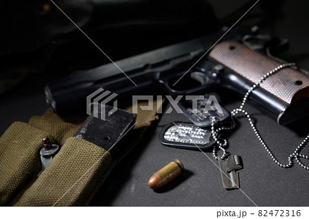銃弾にピントを合わせた古い軍用拳銃のイメージ