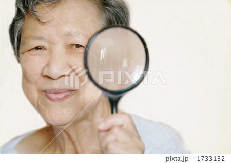ルーペを持つシニア女性