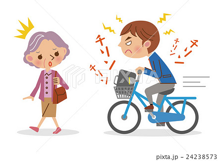 自転車のベルを鳴らす男子学生と迷惑する老女