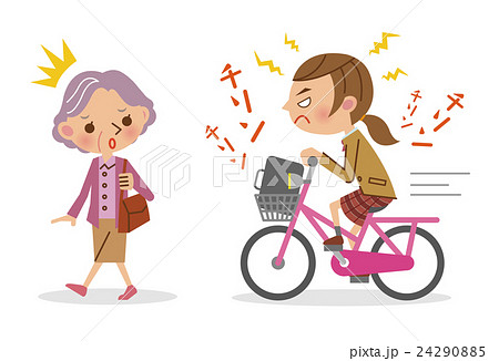 自転車のベルを鳴らす女子生徒と迷惑する老女