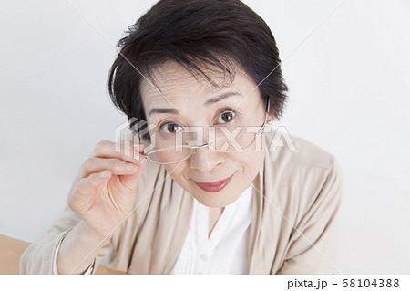 老眼鏡 眼鏡をかける女性 アクティブシニア 明るい