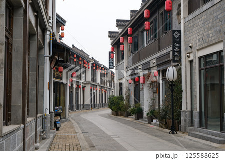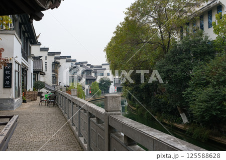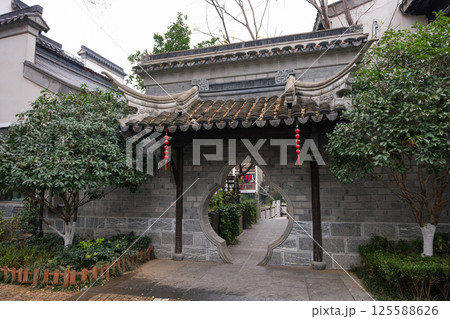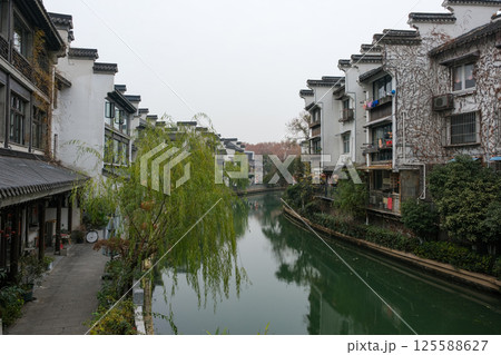 中国 南京市の繁華街 老門東の街並みと秦淮河
