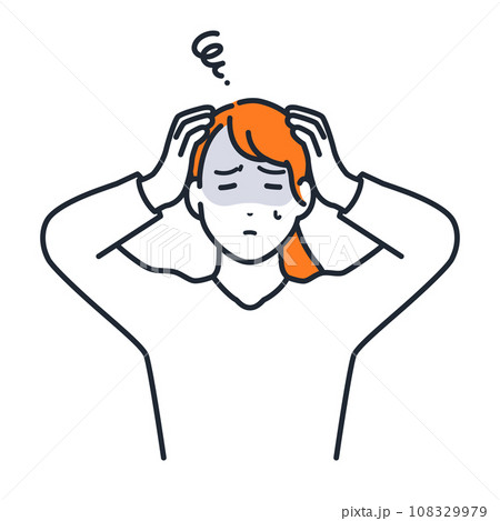 頭を抱えて悩む若い女性のシンプルなベクターイラスト素材