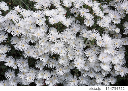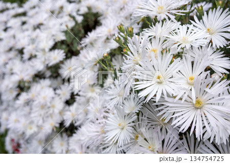 一面の白いマツバギクの花