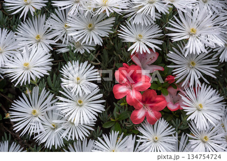 白いマツバギクとサツキの花