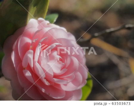 ピンク色のツバキの花 花 椿