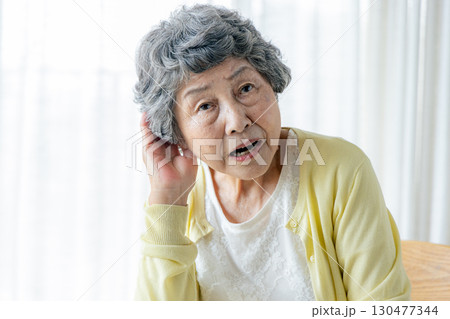 耳が遠いシニア女性 リビングルーム