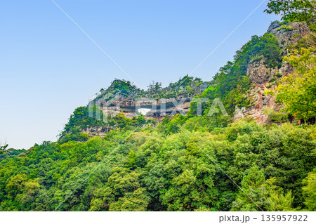 新緑の耶馬渓ダム記念公園 渓石園 パノラマ【大分県中津市耶馬渓】