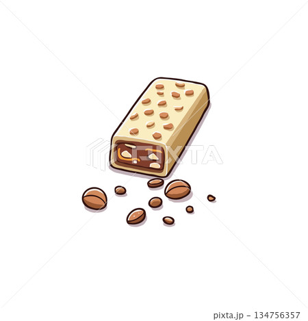 Illustration of a delightful caramel nut bar with creamy filling isolated on a pristine white